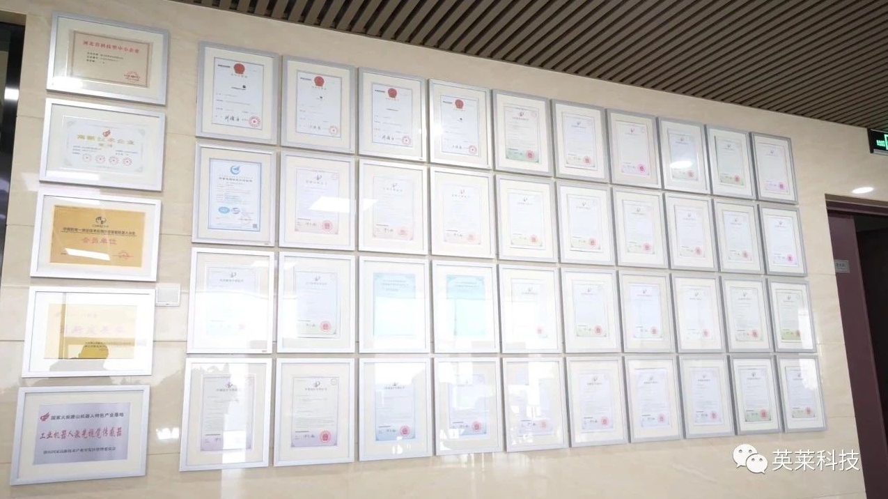 英萊科技目前已經(jīng)取得國家發(fā)明專利、實(shí)用新型專利、外觀設(shè)計(jì)專利、計(jì)算機(jī)軟件著作登記證等40余項(xiàng),并先后獲得了“河北省科技型中小企業(yè)”、“高新技術(shù)企業(yè)”、“中國機(jī)器人產(chǎn)業(yè)聯(lián)盟成員單位”、“中國機(jī)器視覺產(chǎn)業(yè)聯(lián)盟成員單位”、“國家火炬唐山機(jī)器人特色產(chǎn)業(yè)基地”等多項(xiàng)資格,是KUKA\FANUC\ABB\YASKAWA等多家機(jī)器人公司的激光視覺傳感器官方認(rèn)證合作伙伴。2019年,英萊科技成功獲評河北省“專精特新”中小企業(yè),機(jī)器視覺產(chǎn)業(yè)聯(lián)盟會員單位等榮譽(yù)。